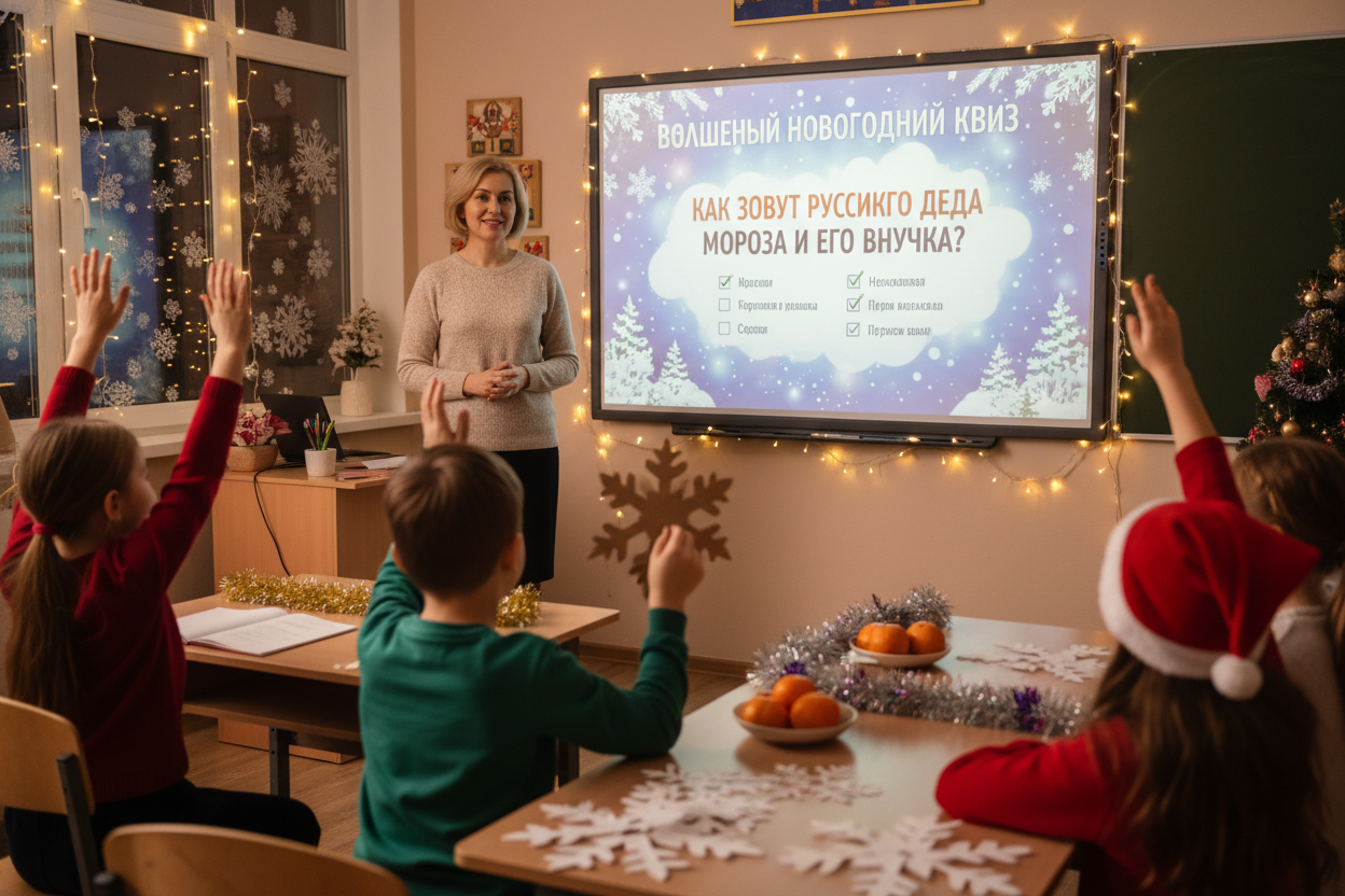 Последняя неделя декабря — особое время в школе. Дети пишут контрольные, но мысли их уже далеко: у ёлки, с подарками и мандаринами. Настроение предпраздничное, но энергия разрозненная. В прошлом году я решила не бороться с этим, а возглавить. И превратила наш последний урок в… новогодний квиз.